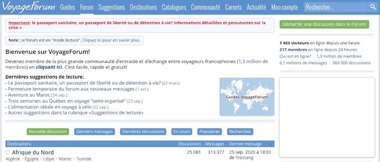 Page d’accueil du site Voyageforum.com. Capture d’écran