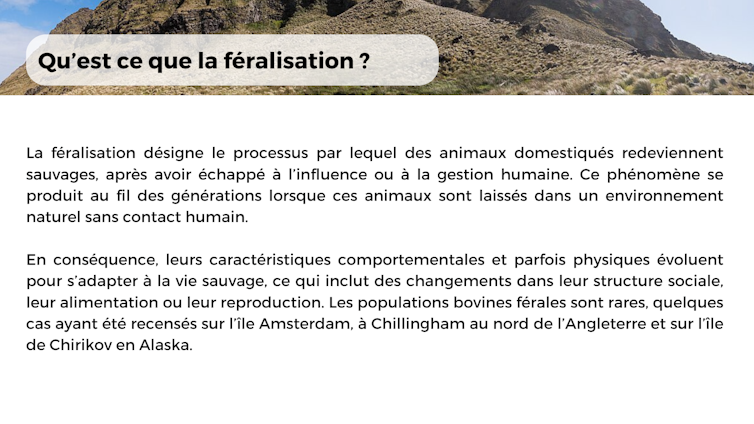 Notre étude a également mis en évidence l’action combinée de plusieurs gènes contrôlant les traits complexes impliqués dans la féralisation, et suggèrent que des mutations déjà présentes dans le génome des animaux fondateurs ont joué un rôle dans l’adaptation rapide (quelques générations) de la population bovine de l’île Amsterdam à la vie sauvage.