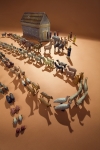 À tout seigneur tout honneur, l’exposition s’ouvre sur des arches de Noé remontant jusqu’à 1850. Toujours datant du milieu du XIXe siècle, on trouve ensuite un bateau à rames avec sa passagère et son compagnon aux avirons, mûs par un mouvement d’horlogerie.