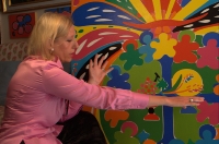 R : « C’est vrai. Le fait de recourir à des aplats, la séparation entre ceux-ci qui ressemble aux plombs des vitraux, l’utilisation de couleurs franches (rouge, vert, bleu, jaune, magenta, noir) au détriment des pastels, tout cela ressemble picturalement à du vitrail. Par ailleurs, j’accorde une grande importance à la vibration des couleurs, à leur entrée en résonance les unes par rapport aux autres, sans recourir au moindre artifice. C’est ainsi que désormais je n’utilise plus les effets qui donnent du relief, par exemple. Enfin, le commentaire que je peux faire du tableau est une forme de catéchèse. En tout cela, je me rapproche du vitrail. Par contre, l’enseignement qui va passer à travers le commentaire du tableau sera positif et ouvert sur l’infini, pas uniquement illustratif, centré sur un épisode précis et concret de la Bible.