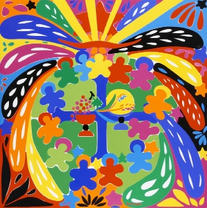 R : « Un jour, alors que je faisais des paysages que j’« emparadisais , à l’époque où je venais de me remettre à la peinture, un commissaire d’exposition sur la Bible m’a dit : « vous, vous ferez un jardin d’Eden . Et c’est vrai que maintenant je recherche sans cesse le sens profond de l’Eden et celui de la Jérusalem Céleste. Peut-être cela est-il à rapprocher du fait que j’aime le paradis, la gaieté, la joie intérieure et spirituelle de la foi. Je crois pouvoir dire que ma peinture n’est ni l’illustration d’un épisode biblique, ni la transcription de la conclusion intellectuelle d’un raisonnement théologique. Elle est directement reliée à ma foi.
