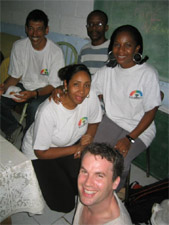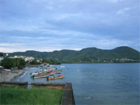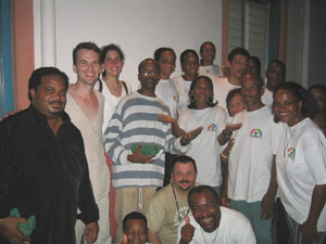 C’est là, qu’après un très beau temps de prière avec les responsables du groupes, nous vivrons un temps de louange magnifique. Seul problème : nous commençons à chanter à Morne des Esses à 18h40, alors que Marius a planifié un « enseignement » de notre part au groupe de prière de Trinité à 19h. Je m’y colle donc : je laisse l’équipe continuer le concert-louange et j’arrive seul à 19h30 à l’église de Trinité où 200 personnes attendent le « groupe de la communauté des béatitudes ». Je rectifie sur qui nous sommes et me voilà donc prêchant sur la louange et les 7 dons de l’Esprit Saint. C’est pas la même ambiance que là haut : c’est plus silencieux et je pense qu’ils sont déçus de ne pas voir arriver un groupe entier (qui plus est en retard). Mais ça se passe bien et j’ai l’occasion de faire la rencontre du sympathique prêtre polonais de la paroisse. Retour à Morne des Esses, où le groupe a prévu plein de bonnes choses typiques pour nos agapes fraternelles (Ah ce sandwich au groin ! N’est-ce pas Michèle ?) . Nous vivons un moment exceptionnel, qui prolonge la soirée de prière, où dès la première rencontre nous expérimentons que nous sommes frères et sœurs car l’essentiel nous unis.