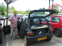 Mardi, nous commençons par aller à Fort de France pour entrer en contact avec le vicaire général du diocèse : nous clarifions le fait que contrairement à ce qui a été annoncé nous ne sommes pas la communauté des Béatitudes mais le groupe de musique qui a enregistré et joue en concert les chants de jeunes des Béatitudes. D’autre part nous apprenons que l’évêché suit de près ce qui se passe autour de la louange car certains s’en servent pour une activité lucrative pas toujours très claire. Une fois la situation éclairée nous partons pour récupérer une voiture de location. Marius faisant le chauffeur pour la moindre de chose cela ne va pas être vivable longtemps. Là encore un beau morceau d’anthologie, un premier loueur ne veut pas prêter une voiture , alors Marius va en voir un autre.