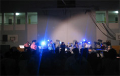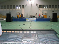 Finalement à partir de 16h30 les spectateurs commencent à arriver. Un vidéoprojecteur est installé. La halle des sports de Trinité se remplit. Il y aura plus de 600 entrées payantes, Marius revit et esquisse un pas de danse (si si je l’ai vu, ça vaut le coup). La soirée commence par les Enfants de Louange qui enchaînent des chants un peu zouc avec leurs magnifiques voix. Puis nous prenons le relais. Sur scène on entend rien. A chaque accord j’ai mon enceinte qui semble exploser, je jongle entre mes 3 claviers et les changements de tons (préparation un peu légère monsieur Marvel …) . Mais ça passe, la foule rentre dedans. Vincent cartonne bien. Il transpire comme un sumo au point d’encore une fois casser une corde (Waterproof les cordes pourtant !) . C’est pas grave, ça le fait. Du moins c’est ce qu’on nous dira après le concert. Dont tout le monde repart ravis, et nous épuisés et essorés.
