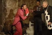 L’anniversaire [1] se joue dans la petite salle chaude, voûtée et à la vue bien dégagée de l’Essaïon. Si un Michel Voletti, à la carrière si remplie, peut ne pas faire montre de son trouble lorsque les spectateurs ne savent pas se tenir (un soir on entendit un fou rire à peine étouffé durant toute la représentation, jusqu’à ce qu’un téléphone portable sonne), le talent de ses partenaires dépend encore de l’écoute de la salle. Mais si cette dernière est simplement normale, on a devant soi un trio équilibré qui rend chacun des personnages convaincant.