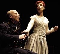 Il y en a qui ont l’humour grinçant involontaire, ainsi Alain Alexis Barsacq quand il explique que Dürrenmatt – dans Play Strindberg [1] – a transformé la Danse de mort, œuvre noire et misogyne de Strindberg, en simple pièce pessimiste. Même si le rôle du cousin, d’épouvanté chez Strindberg, devient celui d’un être aussi abject que les autres chez son adaptateur. Mais Alain Alexis Barsacq sait de quoi il parle : c’est en tant qu’assistant de Dürrenmatt qu’il put mesurer combien ce dernier avait une vision violente de la société. Ce passé lui permet de créer une mise en scène juste de cette pièce, qui tienne compte de ses aspects symboliques. En effet, ce n’est pas l’histoire d’un vieux couple qui se déchire que Dürrenmatt donne à contempler, mais sa vision de la société, et il le fait comprendre en situant l’action sur une île.